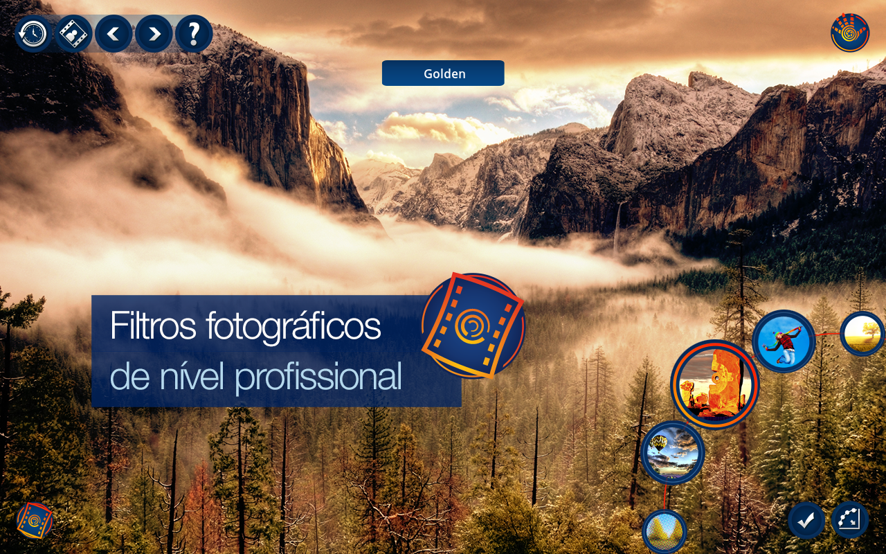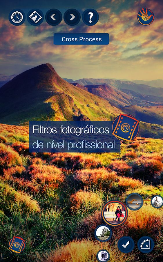 Um total de mais de vinte filtros, entre eles “Black and White”, “Bleach Bypass”, “Color Standout”, “Cross Process”, “Dramatic”, “Duotone”, “Fog”, “Glow”, “Golden”, “HDR”, “Halftone”, “Ink”, “Lomo”, “Old Photo”, “Polarization”, “Polaroid”, “Sepia”, “Sketch”, “Smart Contrast”, “Tilt Shift”, “Tiny Planet”, “Vignette”, e “Vintage”, estão sempre à sua disposição no caso de você sentir vontade de mudar o aspecto de qualquer uma das suas fotos. Todos eles são igualmente incríveis, fáceis de ajustar e de aplicar e facilmente adaptáveis.