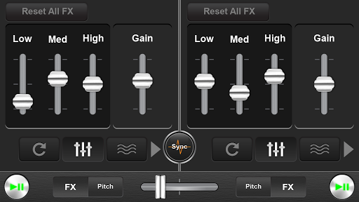 Desfrute de uma ampla gama de efeitos sonoros PRO: Scratch, Flanger, Echo, Loop, Pitch, Equalizador, Cue Point. Você pode adicionar vários efeitos de DJ ao mesmo tempo: Risco em um loop ou adicionar um Flanger em um loop, por exemplo.