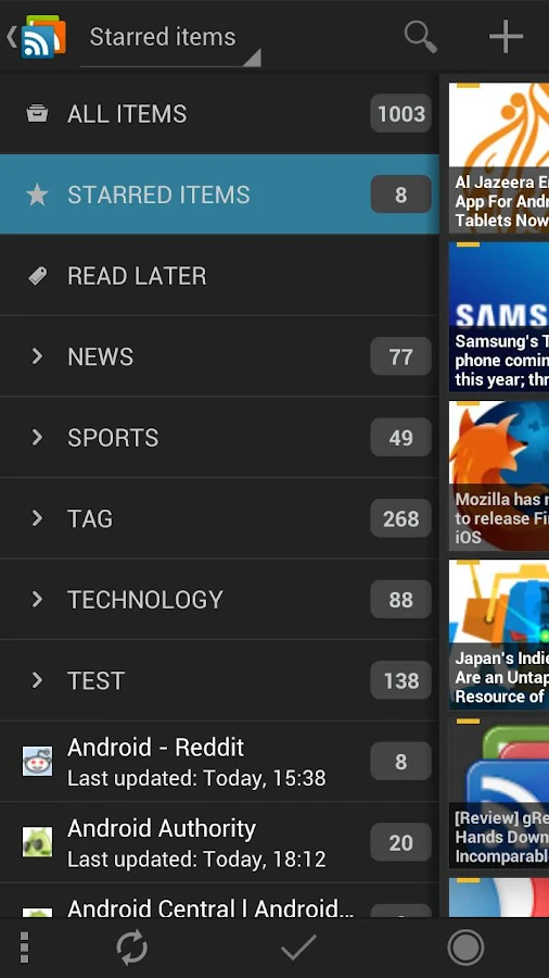 gReader é simples , rápida e intuitiva alimentação / RSS Reader para Android , com belos temas, o apoio do podcast e suporte offline completo . Leia todas as notícias rss / feed em um lugar, onde manter-se com seus sites favoritos é tão fácil quanto verificar seu e-mail .